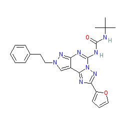 | SMILES | CC(C)(C)NC(=O)Nc1nc2nn(CCc3ccccc3)cc2c2nc(-c3ccco3)nn12 |