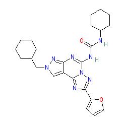 | SMILES | O=C(Nc1nc2nn(CC3CCCCC3)cc2c2nc(-c3ccco3)nn12)NC1CCCCC1 |