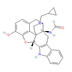 | SMILES | O=CN[C@@]12Cc3c([nH]c4ccccc34)[C@@H]3Oc4c(O)ccc5c4C31CCN(CC1CC1)C2C5 |