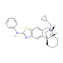 | SMILES | c1ccc(Nc2nc3cc4c(cc3s2)C[C@@H]2[C@@H]3CCCC[C@]43CCN2CC2CC2)cc1 |