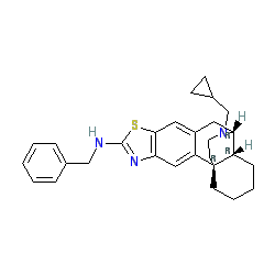 | SMILES | c1ccc(CNc2nc3cc4c(cc3s2)C[C@@H]2[C@@H]3CCCC[C@]43CCN2CC2CC2)cc1 |