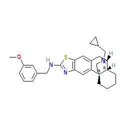 | SMILES | COc1cccc(CNc2nc3cc4c(cc3s2)C[C@@H]2[C@@H]3CCCC[C@]43CCN2CC2CC2)c1 |