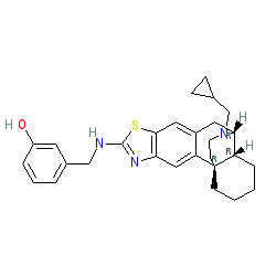 | SMILES | Oc1cccc(CNc2nc3cc4c(cc3s2)C[C@@H]2[C@@H]3CCCC[C@]43CCN2CC2CC2)c1 |