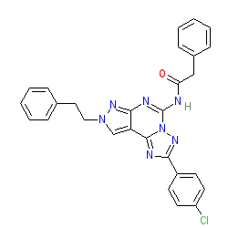 | SMILES | O=C(Cc1ccccc1)Nc1nc2nn(CCc3ccccc3)cc2c2nc(-c3ccc(Cl)cc3)nn12 |