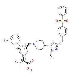 | SMILES | CCn1nc(Cc2ccc(S(=O)(=O)c3ccccc3)cc2)cc1C1CCN(C[C@H]2CN([C@@H](C(=O)O)C(C)C)C[C@@H]2c2cccc(F)c2)CC1 |