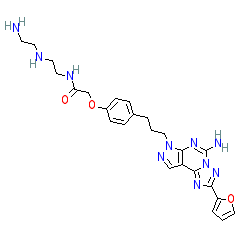 | SMILES | NCCNCCNC(=O)COc1ccc(CCCn2ncc3c2nc(N)n2nc(-c4ccco4)nc32)cc1 |