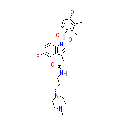 | SMILES | COc1ccc(S(=O)(=O)n2c(C)c(CC(=O)NCCCN3CCN(C)CC3)c3cc(F)ccc32)c(C)c1C |