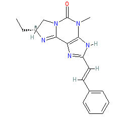 | SMILES | CC[C@@H]1CN2C(=O)N(C)c3[nH]c(/C=C/c4ccccc4)nc3C2=N1 |