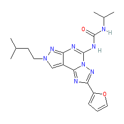 | SMILES | CC(C)CCn1cc2c(nc(NC(=O)NC(C)C)n3nc(-c4ccco4)nc23)n1 |