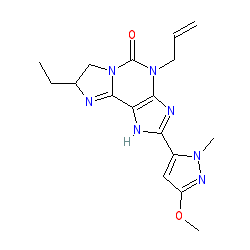 | SMILES | C=CCN1C(=O)N2CC(CC)N=C2c2[nH]c(-c3cc(OC)nn3C)nc21 |
