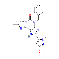 | SMILES | COc1cc(-c2nc3c([nH]2)C2=NC(C)CN2C(=O)N3Cc2ccccc2)n(C)n1 |
