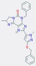 | SMILES | CC1CN2C(=O)N(Cc3ccccc3)c3nc(-c4cc(OCc5ccccc5)nn4C)[nH]c3C2=N1 |
