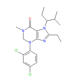 | SMILES | CCc1nc2c(n1C(CC)C(C)C)C(=O)N(C)CN2c1ccc(Cl)cc1Cl |