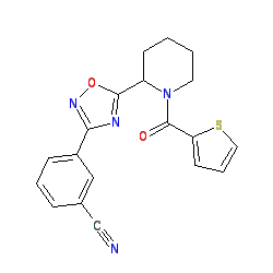 | SMILES | N#Cc1cccc(-c2noc(C3CCCCN3C(=O)c3cccs3)n2)c1 |