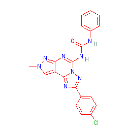 | SMILES | Cn1cc2c(nc(NC(=O)Nc3ccccc3)n3nc(-c4ccc(Cl)cc4)nc23)n1 |