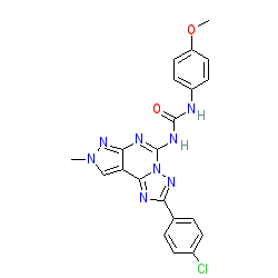 | SMILES | COc1ccc(NC(=O)Nc2nc3nn(C)cc3c3nc(-c4ccc(Cl)cc4)nn23)cc1 |