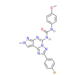| SMILES | COc1ccc(NC(=O)Nc2nc3nn(C)cc3c3nc(-c4ccc(Br)cc4)nn23)cc1 |