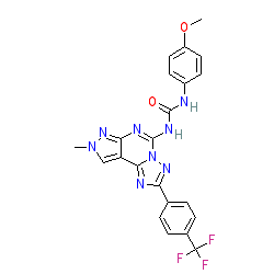 | SMILES | COc1ccc(NC(=O)Nc2nc3nn(C)cc3c3nc(-c4ccc(C(F)(F)F)cc4)nn23)cc1 |