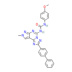 | SMILES | COc1ccc(NC(=O)Nc2nc3nn(C)cc3c3nc(-c4ccc(-c5ccccc5)cc4)nn23)cc1 |