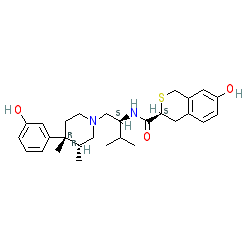 | SMILES | CC(C)[C@@H](CN1CC[C@@](C)(c2cccc(O)c2)[C@@H](C)C1)NC(=O)[C@@H]1Cc2ccc(O)cc2CS1 |