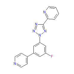 | SMILES | Fc1cc(-c2ccncc2)cc(-n2nnc(-c3ccccn3)n2)c1 |