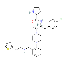 | SMILES | O=C(N[C@H](Cc1ccc(Cl)cc1)C(=O)N1CCN(c2ccccc2CNCCc2cccs2)CC1)C1CCCN1 |