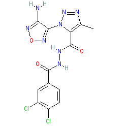 | SMILES | Cc1nnn(-c2nonc2N)c1C(=O)NNC(=O)c1ccc(Cl)c(Cl)c1 |