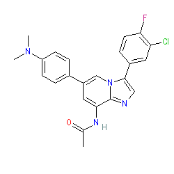 | SMILES | CC(=O)Nc1cc(-c2ccc(N(C)C)cc2)cn2c(-c3ccc(F)c(Cl)c3)cnc12 |