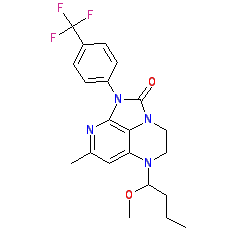 | SMILES | CCCC(OC)N1CCn2c(=O)n(-c3ccc(C(F)(F)F)cc3)c3nc(C)cc1c32 |