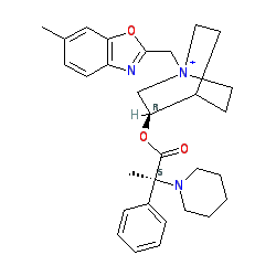 | SMILES | Cc1ccc2nc(C[N+]34CCC(CC3)[C@@H](OC(=O)[C@](C)(c3ccccc3)N3CCCCC3)C4)oc2c1 |