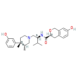 | SMILES | CC(C)[C@@H](CN1CC[C@@](C)(c2cccc(O)c2)[C@@H](C)C1)NC(=O)[C@@H]1Cc2ccc(O)cc2CO1 |