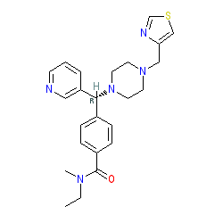| SMILES | CCN(C)C(=O)c1ccc([C@H](c2cccnc2)N2CCN(Cc3cscn3)CC2)cc1 |