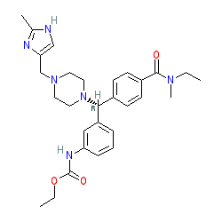 | SMILES | CCOC(=O)Nc1cccc([C@@H](c2ccc(C(=O)N(C)CC)cc2)N2CCN(Cc3c[nH]c(C)n3)CC2)c1 |