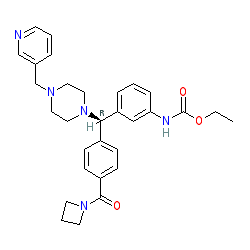 | SMILES | CCOC(=O)Nc1cccc([C@@H](c2ccc(C(=O)N3CCC3)cc2)N2CCN(Cc3cccnc3)CC2)c1 |