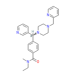 | SMILES | CCN(C)C(=O)c1ccc([C@H](c2cccnc2)N2CCN(Cc3ccccn3)CC2)cc1 |
