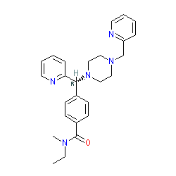 | SMILES | CCN(C)C(=O)c1ccc([C@H](c2ccccn2)N2CCN(Cc3ccccn3)CC2)cc1 |