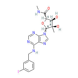 | SMILES | CNC(=O)[C@H]1O[C@@H](n2cnc3c(NCc4cccc(I)c4)ncnc32)[C@](C)(O)[C@@H]1O |