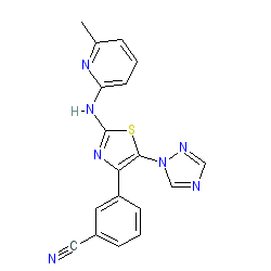 | SMILES | Cc1cccc(Nc2nc(-c3cccc(C#N)c3)c(-n3cncn3)s2)n1 |