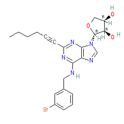 | SMILES | CCCCC#Cc1nc(NCc2cccc(Br)c2)c2ncn([C@@H]3OC[C@@H](O)[C@H]3O)c2n1 |
