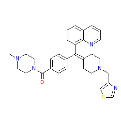 | SMILES | CN1CCN(C(=O)c2ccc(C(=C3CCN(Cc4cscn4)CC3)c3cccc4cccnc34)cc2)CC1 |
