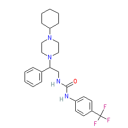 | SMILES | O=C(NCC(c1ccccc1)N1CCN(C2CCCCC2)CC1)Nc1ccc(C(F)(F)F)cc1 |