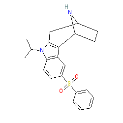| SMILES | CC(C)n1c2c(c3cc(S(=O)(=O)c4ccccc4)ccc31)C1CCC(C2)N1 |