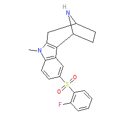 | SMILES | Cn1c2c(c3cc(S(=O)(=O)c4ccccc4F)ccc31)C1CCC(C2)N1 |