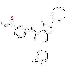 | SMILES | O=C(O)c1cccc(NC(=O)c2[nH]c(C3CCCCCC3)nc2CCC23CC4CC(CC(C4)C2)C3)c1 |