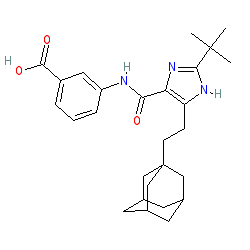 | SMILES | CC(C)(C)c1nc(C(=O)Nc2cccc(C(=O)O)c2)c(CCC23CC4CC(CC(C4)C2)C3)[nH]1 |