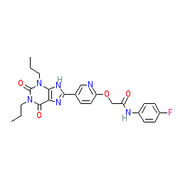 | SMILES | CCCn1c(=O)c2nc(-c3ccc(OCC(=O)Nc4ccc(F)cc4)nc3)[nH]c2n(CCC)c1=O |
