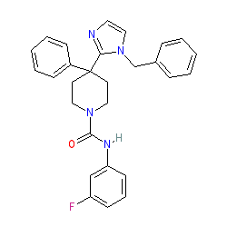 | SMILES | O=C(Nc1cccc(F)c1)N1CCC(c2ccccc2)(c2nccn2Cc2ccccc2)CC1 |