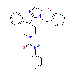 | SMILES | O=C(Nc1ccccc1)N1CCC(c2ccccc2)(c2nccn2Cc2ccccc2F)CC1 |