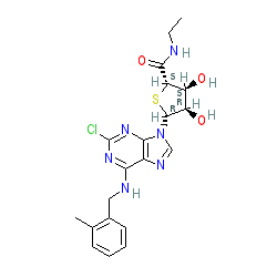 | SMILES | CCNC(=O)[C@H]1S[C@@H](n2cnc3c(NCc4ccccc4C)nc(Cl)nc32)[C@H](O)[C@@H]1O |