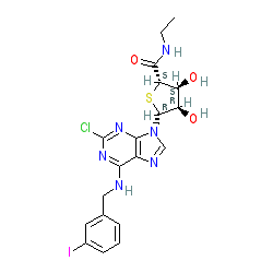 | SMILES | CCNC(=O)[C@H]1S[C@@H](n2cnc3c(NCc4cccc(I)c4)nc(Cl)nc32)[C@H](O)[C@@H]1O |
